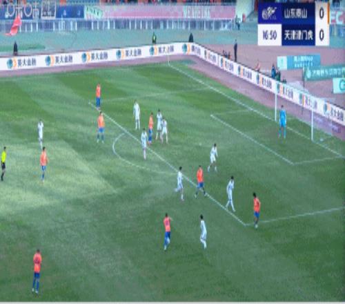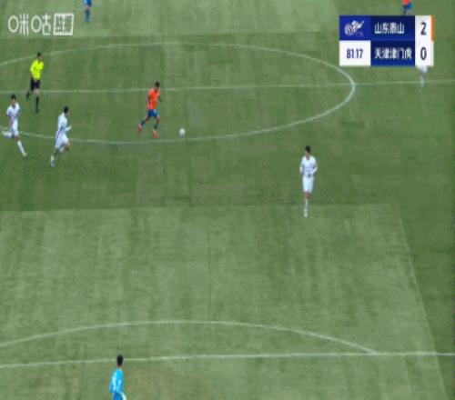 不过,在被罚下一人后,津门虎却马上收获进球。基莱斯在禁区内反复变线后,躲过对手三人包夹,起左脚施射完成破门,将比分改写为1比2。
